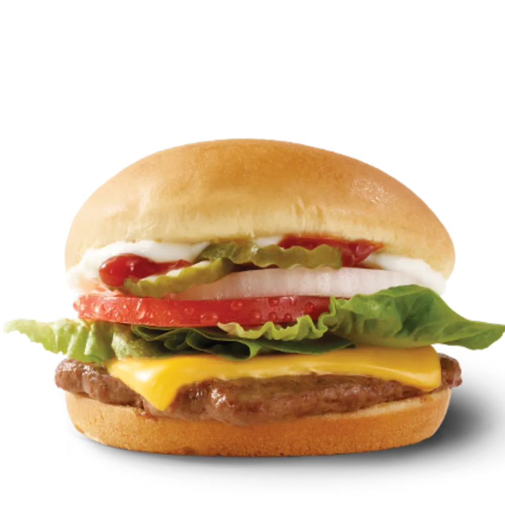 Quarter-pound patty, American cheese, lettuce, tomato, pickle, ketchup, mayo, onion.