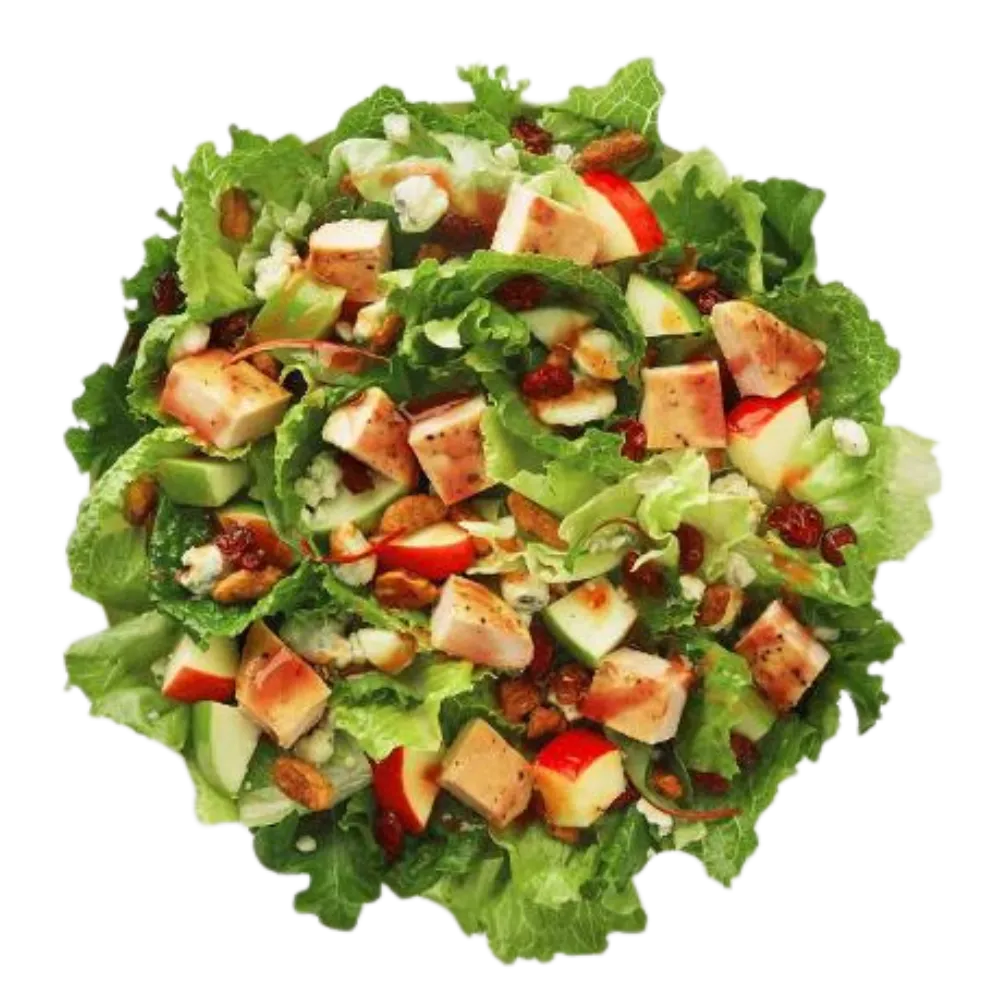 Mixed greens, candied pecans, grilled chicken, apple slices.